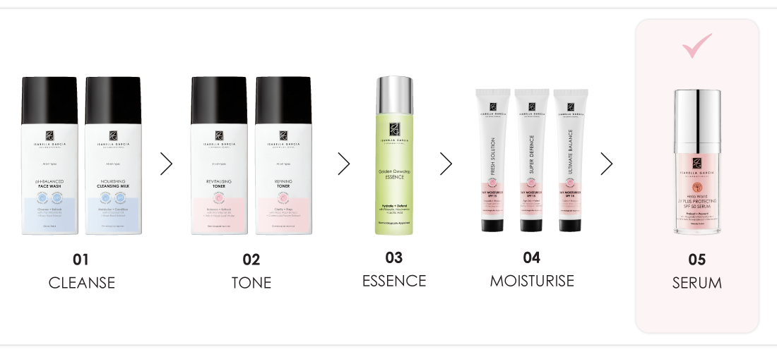 TIP: For swift application, your versatile SPF 50 serum can be combined with other products in your skincare routine, such as your Hello Perfection Dark Mark Fading Serum, day moisturiser, specialised serums or make-up. Simply combine the two products in the palm of your hand before application.