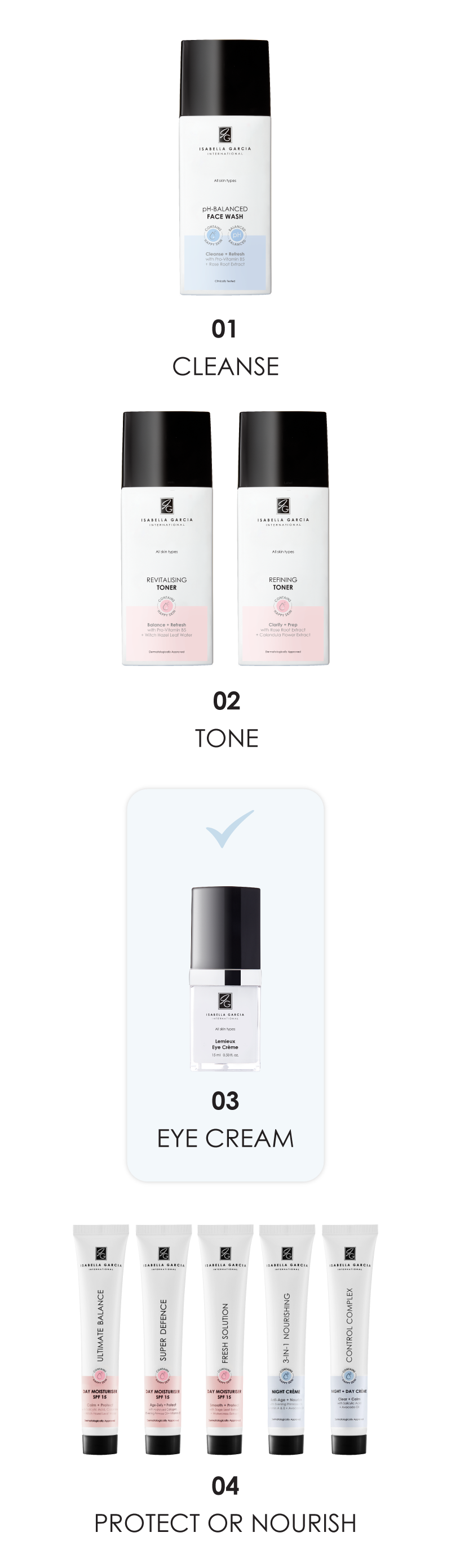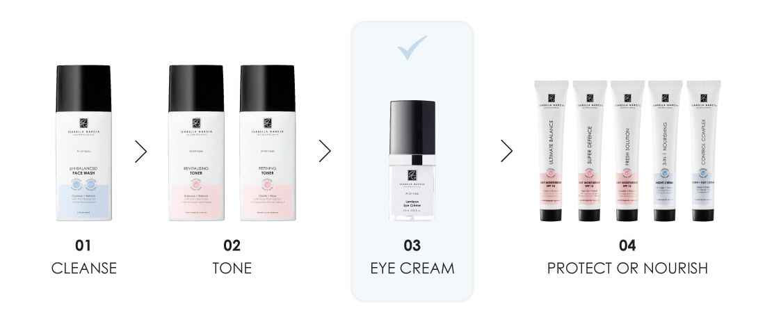 DIRECTIONS: After applying your specialised care products in the morning and/or evening, apply your eye crème to your eye area, using the cushion of your ring finger. Follow with your day moisturiser or night cream. Allow your specialised care products to be fully absorbed before applying your eye crème.