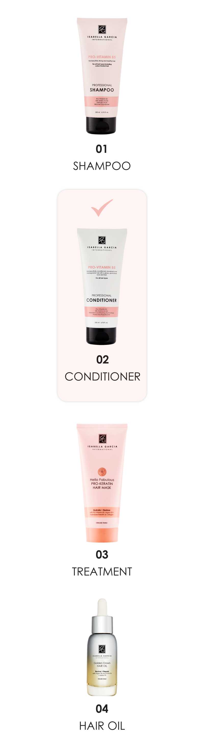 A must use after using the Pro-Vitamin B5 Shampoo the conditioner just takes your hair to new heights…..Love, Love, Love….. a must have for your daily hair washing routine…… thank you Isabella Garcia for making feel and look beautiful from hair to toe